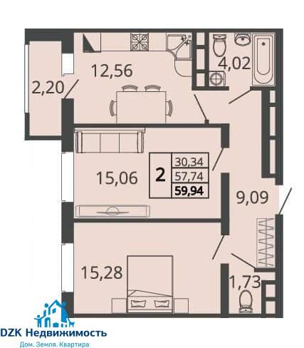 2-к. квартира, 60 м²