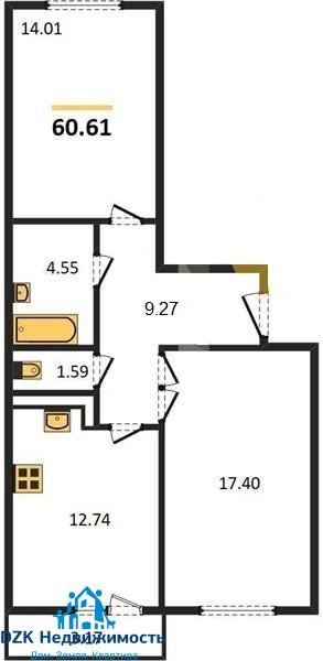2-к. квартира, 60.61 м²