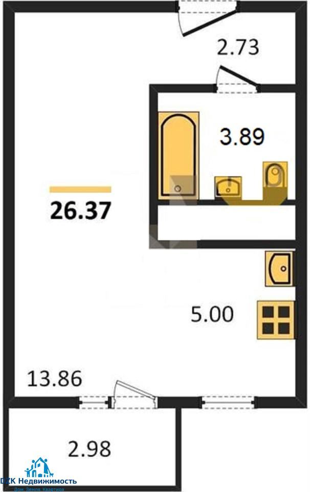 Продам студию площ. 26. 6 кв. м на 3 этаже 16 этажного мон. дома. 5,2/13,5/26. 6. Дом сдан. В шаговой доступности школа. Квартира имеет два окна и планировку в которой можно кухню отделить от комнаты и получить полноценную однокомнатную квартиру.Ссылка на объявление: https://dzk.ooo/saleapartments/129108