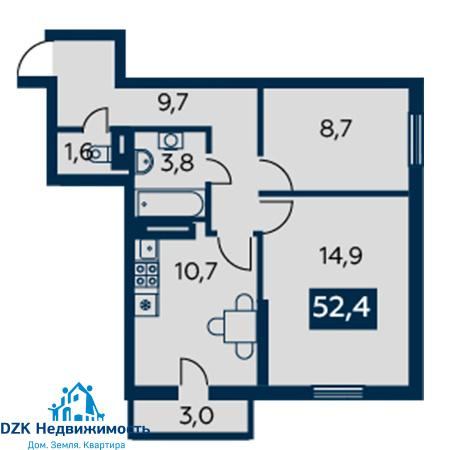 2-к. квартира, 54.3 м²