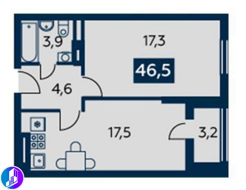 1-к. квартира, 46.4 м²