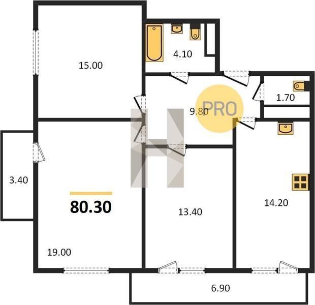 3-к. квартира, 80 м²